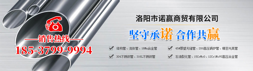 洛阳市诺赢商贸有限公司坐落于洛阳市地区的洛阳市老城区310国道钢材市场中路4-5号。,经营范围为:不锈钢管,合金管,高压锅炉管,无缝管,不锈钢焊管,不锈钢无缝钢管,厚壁管,热轧无缝钢管,冷拔无缝钢管,无缝化钢管,焊管,螺旋管。洛阳市诺赢商贸有限公司,常年销售无缝钢管、合金管、高压锅炉管、不锈钢管! 多年来,洛阳诺赢商贸有限公司始终秉承儒商治企,坚持 “服务客户、回报员工、创造效益、奉献社会”作为自己治企的宗旨,以“ 高起点、守信誉、诚服务、求进取、创牌 ” 作为自己的经营理念。 洛阳市诺赢商贸有限公司是钢管行业中创立早,规模大、实力强的企业之一,库存常年保持万吨以上,为更好的服务客户扩大经营范围,我公司特开办了上门送货服务,并有专车专人接送洽谈人员前来订购业务。